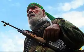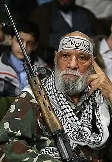 ![]() حاجی بخشی با پیشانیبند پیروان امام (ره) | |