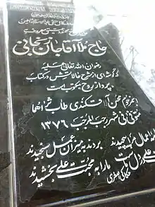 وی در سال ۱۳۳۵ هجری شمسی از دنیا رفت مقبره وی در قبرستان پائین شهر زنجان میباشد. مقبره وی تاکنون چندین بار توسط سید حسن ابطحی مرمت و بازسازی شده و اکنون زیارتگاه مشهوری در زنجان است.[5]