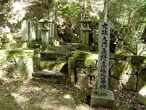 ![]() گورهای اوئوچی یوشیتاکا و خادمان وی در معبد تای نِی، در ناگاتو، یاماگوچی | |||||||