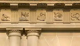 The Circus (Bath)، جزئیات معماری کتیبه، نشان دادن حاشیه متناوب (معمار، جان وود. سالمند)