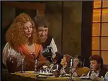 ![]() فیلم گمشدهٔ ساخت ۱۹۹۱ اقتباسی روسی از|یاران حلقه اثر جی. آر. آر. تالکین، در این صحنه چهار هابیت در خانهٔ تام بامبادیل و گلدبری دیده میشوند. | |