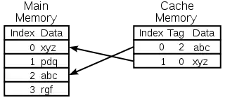 یک حافظه پنهانی از مجموعه ای از ورودیها ساخته شدهاست. هر ورودی مربوط به دادهاست، که یک کپی از دادههای مشابه در برخی از فضاهای پشتیبان است. هر ورودی همچنین یک تگ دارد که هویت دادهها را در فضای پشتیبان تعیین میکند و مشخص میکند که کدام ورودی یک کپی است.