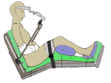 - بیمار ابتدا به حالت خوابیده به پشت بر روی تخت قرار گرفته و سپس با زوایه دادن به تخت، آن را به ٩٠ درجه نزدیک میکنند.