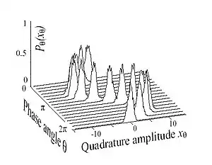 - درα≫۱ از شکل ۵، هندسه ساده به دست میدهد : از این میتونیم بفهمیم که ارتباطی بین عدم قطعیت عدد و عدم قطعیت فاز وجود دارد ؛ که اغلب میتوان به صورت رابطه عدم قطعیت فاز- عدد تعبیر کرد. این رابطه عدم قطعیت فرمولی نیست: هیچ عملگر فاز تعریف شده یکتا در مکانیک کوانتومی وجود ندارد. small