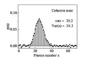 - که ها ویژه حالتهای (عددی) هامیلتونی انرژی هستند؛ که یک توزیع پواسونی است. احتمال مشاهده n فوتون عبارتست از: