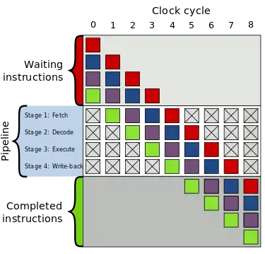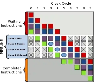 حباب در رایانش یک سکسکه یا تأخیر در اجرای دستور در پردازش خط لوله (به انگلیسی: Pipe line) است. در شکل زیر، اجرای دو سری دستور مشابه در خط لولهٔ ۴ مرحلهای دیده میشود که در اولی بدون حباب اجرا شده است و در دومی به دلیل یک تأخیر در واکشی (به انگلیسی: Fetch) دستور زرشکی رنگ در چرخهٔ دوم، یک حباب ایجاد شده و این حباب باعث عقب افتادگی همه دستورهای پس از آن شده است.