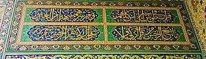 کتیبهٔ دوم اطراف آن است و آیهای از قرآن را دربردارد: