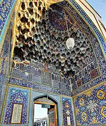 ![]() گنبد، ایوان و گلدستهٔ حرم امام رضا از صحن عتیق | |