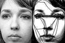 ردی از حرکات ناگهانی چشم بر روی یک چهره. چشم در حال جستجوی نقاط مختلف برای جمع آوری اطلاعات است.