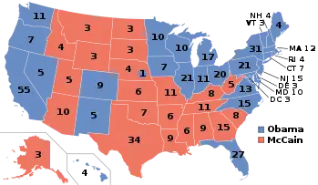 طرح رنگها در سیاست ایالات متحده از استانداردهای بینالمللی منشعب شدهاست. از سال ۲۰۰۰ رنگ قرمز تبدیل به رنگ جناح راست یا همان حزب جمهوریخواه شده و رنگ آبی نشان از جناح چپ یا حزب دموکرات دارد. با این وجود، بر خلاف رنگ احزاب در دیگر کشورها، احزاب آمریکایی خود این رنگها را انتخاب نکردهاند، بلکه این رنگها در رسانهها در انتخابات سال ۲۰۰۰ و توسط خبرنگاران برای این دو حزب در نظر گرفته شد. قبل از انتخابات سال ۲۰۰۰ در هر انتخابات ریاست جمهوری رسانهها اعلام میکردند که چه رنگی مربوط به کدام نامزد و حزب است. این چرخه تعویض رنگها تا سال ۲۰۰۰ ادامه یافت تا این که رنگهای مطرح شده در این انتخابات مورد قبول و توجه عام واقع شد و برای عدم بروز سردرگمی دیگر این رنگها برای همیشه برای این احزاب در نظر گرفته میشوند.[14]