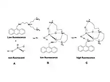 - Huston, Michael E.; Haider, Karl W.; Czarnik, Anthony W. (June 1988). "Chelation enhanced fluorescence in 9,10-bis[[(2-(dimethylamino)ethyl)methylamino]methyl]anthracene". Journal of the American Chemical Society. 110 (13): 4460–4462. doi:10.1021/ja00221a083. ISSN 0002-7863.