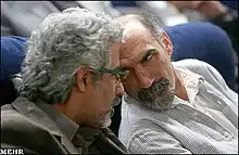 از راست: خسروجردی و احمدرضا درویش در نشست میرحسین موسوی با هنرمندان، انتخابات ۱۳۸۸