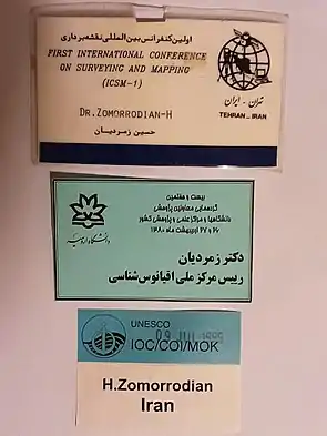 - Zomorrodian, Hossein (1973). Gravimetermessungen zum Aufbau einer Iranischen Nationalen Gravimetereichlinie I.N.G.C.L. Germany: Zeitschrift für Vermessungswesen.