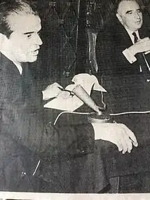 عکس حسین کسمایی و ژرژ پمپیدو در کنفرانس مطبوعاتی در سفارت فرانسه در تهران در ماه مه ۱۹۶۸ -آلبوم خانوادگی کسمایی