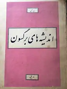 ۱- «فلسفه» ۲- «مکاتب فلسفی:اگزیستانسیالیزم»، تهران، آبان ۱۳۲۷ ۳ـ «اندیشههای برگسون»، بنگاه مطبوعاتی صفی علیشاه