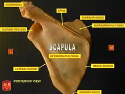 ![]() سطح پشتی کتف سمت چپ و حفره بالاخاری که با رنگ سرخ نشان داده شده است | |
