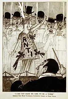 - مشارکتکنندگان ویکیپدیا. «Women's suffrage in the United States». در دانشنامهٔ ویکیپدیای انگلیسی، بازبینیشده در ۹ ژوئیه ۲۰۱۱.