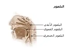 حلق، فضای میانی حفره دهانی و دستگاههای تنفس و گوارش است. گلو مجرایی ماهیچه ای-غشایی است[1] که پلی میان بینی، حنجره و مری میسازد. گلو سه بخش دارد: گلوی بینی (Nasopharynx)؛ گلوی دهانی (Oropharynx)؛ گلوی حنجره (Laryngopharynx).[1] گلو چهارراهی است که به بینی و دهان از بالا و از پایین به مری و نای راه دارد. در جایی که دنباله مری است از اپیتلیوم سنگفرشی غیر شاخ لایه لایه، و در نزدیک حفرهٔ بینی از اپیتلیوم استوانهای لایه لایه کاذب مژکدارِ دارای سلولهای جامی پوشیده شدهاست. لوزهها در گلو جای دارند. مخاط گلو همچنین غدد بزاقی مخاطی کوچک زیادی در لامینا پروپریای خویش (از جنس بافت همبند فشرده) دارد. عضلات منقبضکننده و طولی حلق، بیرون این لایه اند…