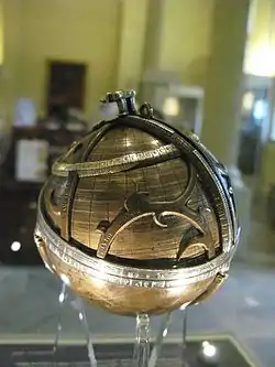 نخستین توصیف استرلاب کروی توسط دانشمند ایرانی، ابوالعباس نیریزی انجام شدهاست. اخترشناسان ایرانی و عرب، حلقهدارهای یونانی را در سدهٔ ۸ میلادی بهبود بخشیدند و ستارهشناس ایرانی، ابواسحاق فَزَری، کتابی ویژهٔ این افزار به نام «ذاتالحلق» نوشت.[2]