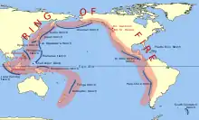 حلقهٔ آتش منطقهای است که در آن شمار زیادی از زمینلرزهها و فورانهای آتشفشانی در حوضهٔ اقیانوس آرام رخ میدهد. این حلقه در یک نعل اسب ۴۰٬۰۰۰ کیلومتر (۲۵٬۰۰۰ مایل) با مجموعهای از درازگودالها، قوس آتشفشانی و حرکات پوستهای همراه است. حلقهٔ آتش دارای ۴۵۲ آتشفشان و خانهٔ بیش از ۷۵ درصد از آتشفشانهای فعال و نهفته در جهان است.[1]
