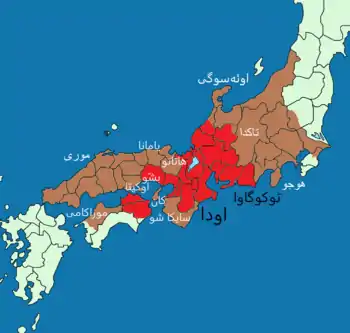 نقشهٔ ژاپن و مناطق حکمرانی دایمیوهای ژاپن در سال ۱۵۷۰ میلادی، در زمان نبرد آنهگاوا
