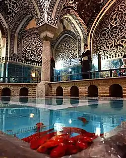 حمام حاج آقای تراب یا حمام دوقلو که در محله علیآباد یا کوچه سیدهاو روبروی مسجد حاج آقا تراب شهر نهاوند قرار دارد نمادی از هنر ایرانی اسلامی است که در سال ۱۲۳۰ و در زمان ناصرالدین شاه قاجار بنا نهاده شدنهاوند از شهرستانهای مهم تاریخی استان همدان به شمار میآید و نظریههای مختلفی از پیشینه تاریخی این منطقه باستانی باقی مانده است شهرستان نهاوند از شمال به شهرستان تویسرکان و از شمال غربی به شهرستان کنگاور در استان کرمانشاه از شرق به بخش ثامن در شهرستان ملایر و از جنوب به شهرستان سلسه و دلفان در استان لرستان و از غرب به شهرستان کرمانشاه محدود میشود. نهاوند به علت دارا بودن موقعیت جغرافیایی ویژه و آب فراوان و خاک مستعد از نواحی ممتاز استان همدان به شمار میرود و از مکانهای دیدنی و تاریخی متعددی برخوردار است در این میان حمام حاج آقا تراب یا حمام دوقلو که در محله علیآباد و بافت قدیمی شهر نهاوند قرار دارد نمادی از هنر ایرانی اسلامی است که در سال ۱۲۳۰ و در زمان ناصرالدین شاه قاجار بنا نهاده شده و گردشگران از این بنا بازدید میکنند. در سر در ورودی این بنا، کتیبهای نصب شده که نام بانی حمام و تاریخ ساخت آن را، سال ۱۲۳۰ هجری شمسی در زمان ناصرالدین شاه قاجار بیان میکند ولی به سبک دوران صفویه ساخته شده است.