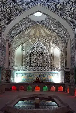 بنا به نوشته مورخان محلی کردستان در کتابهایی همچون تفحه ناصریه نوشته میرزا شکرالله سنندجی حدیقه ناصر میرزاعلی اکبر وقایع نگار، تاریخ اردلان مستوره اردلان، زبده التواریخ سنندجی نوشته قاضی محمد شریف، لب التواریخ نوشته خسرو بن محمداردلان به موضوع ساخت کهن دژ (قلعه)، بازار، مساجد، حمام و بناهای مختلف در زمان ساخت دوباره شهر سنندج به عنوان مرکز ایالت کردستان به دست «سلیمان خان اردلان» والی کردستان اشاره شده است. به نظر میرسد این بنا یکی از مکانهای عالی و باشکوه شهر سنندج با توجه به سنگ نوشته آن مربوط به دوره حاکمیت «امانالله خان اردلان» والی کردستان بوده و کار ساختمانی آن در سال ۱۲۲۰ هجری قمری به اتمام رسیده است. این بنا بعدها به سبب تملک آن به وسیله امین التجار در سال ۱۲۹۵ هجری قمری در دوران حکومت «فرهاد میرزای معتمدالدوله» (عموی ناصرالدین شاه) بازسازی و مرمت عمده به ویژه تزئینات آهک بری آن تجدید شده است. کتیبههای داخل آهنگریهای اضلاع شمالی و جنوبی سکوهای سربینه (حمام سرد) گویای این امر است که تاریخ آنها مربوط به سال ۱۲۵۹ هجری قمری است. این آهنگریهای دوره نخست تقریباً به صورت عمده در زیر لایه جدید قرار میگیرد به جز مواردی که در سکوهای شمالی و جنوبی سربینه (حمام سرد) باقیمانده است.