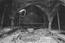 در سال ۱۳۷۱ شورای عالی شهرسازی به علت وجود این حمام، با احداث خیابان مخالفت کرد. سرانجام ساعت ۲ نیمه شب بیست و سوم فروردین ماه سال ۱۳۷۴ بود که عدهای ناشناس به حمام خسروآقا حمله کردند و بعد از بیهوش کردن نگهبان حمام، این بنای تاریخی را با خاک یکسان کردند و سنگاب منحصر به فرد آن را نیز دزدیدند. مردم و شهرداری یکدیگر را به انجام این عملیات متهم میکنند و عاملان آن تاکنون شناسایی و مجازات نشدهاند. خیابان حکیم نیز در همان سال راهاندازی شد و پس از آن گرچه چند بار در سالهای مختلف صحبت از بازسازی حمام و خطر ازبین رفتن آخرین بقایای آن شد، اما بازسازی هرگز انجام نگردید.[2]