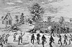![]() ![]() From top to bottom: Charge of O'Neill's Fenians upon the Canadian troops; Canadian soldiers charge a Fenian Raid on Eccles Hill | |||||||