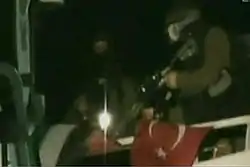 ![]() سربازان اسرائیلی با اسلحه بر روی کشتی حامل کمکهای انساندوستانه | |