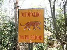تابلوی هشدار در رابطه با محدوده و قلمروی ببر سیبری