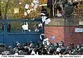 علیرغم حضور مأموران امنیتی تجمعکنندگان به ساختمان سفارت بریتانیا سنگ و کوکتل مولوتوف پرتاب نمودند و پس از هجوم به دفاتر سفارت، برخی مدارک را به پایین پرتاب کردند. دانشجویان پس از ورود به ساختمان سفارت بریتانیا در خیابان فردوسی تهران پرچم این کشور را پایین کشیده و آن را آتش زدند و به جای آن پرچم ایران را بر سر در سفارت بریتانیا به اهتزاز درآوردند.[5][6]