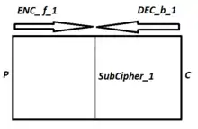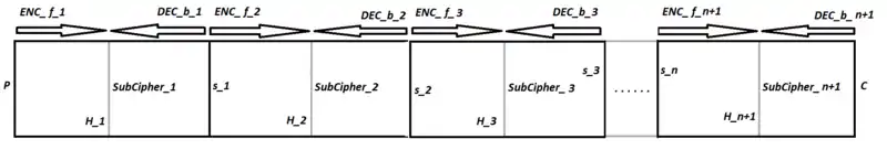 که متن آشکار P چندین بار رمزگذاری شده تا به متن C تبدیل شود.