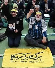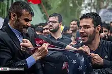 احمدآبادی سمت چپ در نماز جمعه تهران ۲۲ دی ۱۳۹۶ با پرچم مرگ بر آمریکا
