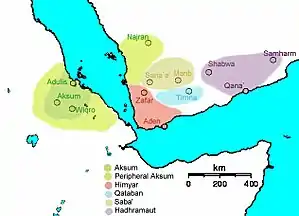 ![]() پادشاهی حمیر (قرمز) در سدۀ سوم | |||||||||