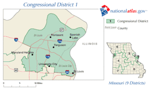 Wikipedia contributors, "Missouri's 1st congressional district," Wikipedia, The Free Encyclopedia, http://en.wikipedia.org/w/index.php?title=Missouri%27s_1st_congressional_district&redirect=no&useskin=monobook&oldid=537560268 (accessed July 12, 2013).