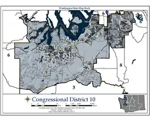 Wikipedia contributors, "Washington's 10th congressional district," Wikipedia, The Free Encyclopedia, http://en.wikipedia.org/w/index.php?title=Washington's_10th_congressional_district&redirect=no&useskin=monobook&oldid=552407890 (accessed July 12, 2013).