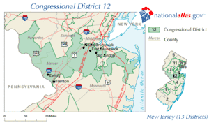 Wikipedia contributors, "New Jersey's 12th congressional district," Wikipedia, The Free Encyclopedia, http://en.wikipedia.org/w/index.php?title=New_Jersey%27s_12th_congressional_district&redirect=no&useskin=monobook&oldid=558890557 (accessed July 12, 2013).
