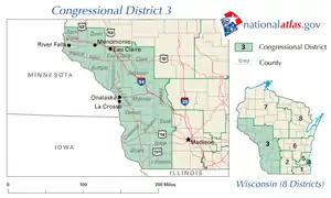 Wikipedia contributors, "Wisconsin's 3rd congressional district," Wikipedia, The Free Encyclopedia, http://en.wikipedia.org/w/index.php?title=Wisconsin's_3rd_congressional_district&redirect=no&useskin=monobook&oldid=535622240 (accessed July 12, 2013).