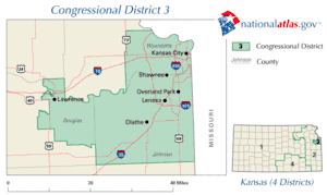 Wikipedia contributors, "Kansas's 3rd congressional district," Wikipedia, The Free Encyclopedia, http://en.wikipedia.org/w/index.php?title=Kansas%27s_3rd_congressional_district&redirect=no&useskin=monobook&oldid=560924830 (accessed July 12, 2013).