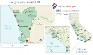 Wikipedia contributors, "California's 50th congressional district," Wikipedia, The Free Encyclopedia, http://en.wikipedia.org/w/index.php?title=California%27s_50th_congressional_district&redirect=no&useskin=monobook&oldid=557706782 (accessed July 12, 2013).