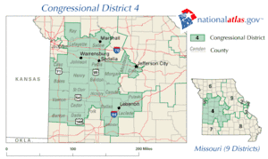 Wikipedia contributors, "Missouri's 4th congressional district," Wikipedia, The Free Encyclopedia, http://en.wikipedia.org/w/index.php?title=Missouri%27s_4th_congressional_district&redirect=no&useskin=monobook&oldid=537565636 (accessed July 12, 2013).