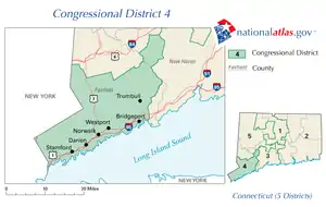 Wikipedia contributors, "Connecticut's 4th congressional district," Wikipedia, The Free Encyclopedia, http://en.wikipedia.org/w/index.php?title=Connecticut%27s_4th_congressional_district&redirect=no&useskin=monobook&oldid=558500118 (accessed July 12, 2013).