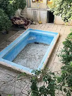 حوض در لغتنامهٔ عمید آمده: «گودالی که در زمین با سنگ یا آجر و سیمان درست کنند برای نگه داشتن آب» و در واقع نیز محفظهای است که معمولاً در حیاط خانهها ایجاد میکنند و در آن آب نگهداری میشود و به خنکای هوا و زیبایی منظره کمک مینماید.