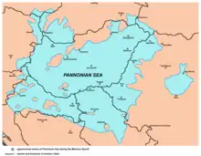 - مشارکتکنندگان ویکیپدیا. «Pannonian Basin». در دانشنامهٔ ویکیپدیای انگلیسی، بازبینیشده در ۴ دسامبر ۲۰۱۸.