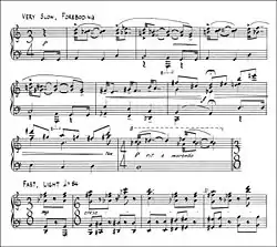 نمونهای از نتهای پیانو که با جوهر حکاکی شدهاند.