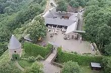 حیاط بیرونی محوطه دفاعی بیرونی قلعه است. این ناحیه از حیاط درونی محافظت میکند، و اغلب شامل آن ساختمانهایی میباشد که برای مدیریت قلعه و تأمین نیازهای کارکنان به کار میرود. این ساختمانهای داخلی میتوانست شامل کارگاه و اصطبل دامها باشند. انبارهایی مانند انبار کاه، آلونک و انبار غله همانند مکان زندگی خدمتکارانی از قبیل ندیمهها و کشاورزان و حتی دژبانها در این قسمت واقع بودند. همچنین در اغلب اوقات، کارخانه آبجوسازی، نانوایی و آشپزخانه (اگر در تالار نمیبودند) در این محوطه قرار داشتند. در انگلستان اغلب به حیاط بیرونی، «دربار پایه» گفته میشد. با توجه به توپوگرافی، همچنین این امکان وجود داشت که به آن حیاط پایینی گفته شود، زیرا برجک دفاعی در حیاط بالایی قرار داشت. قلعه چپستو دارای حیاط پایینی، متوسط و بالایی است.
