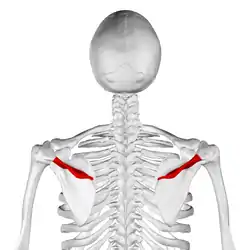 ![]() Left کتف seen from behind (spine of scapula shown in red) | |
