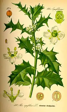 - مشارکتکنندگان ویکیپدیا. «Ilex aquifolium». در دانشنامهٔ ویکیپدیای انگلیسی، بازبینیشده در ۲۵ نوامبر ۲۰۱۴.