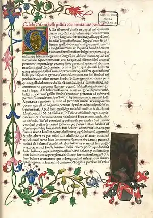 ![]() نخستین صفحهٔ کتاب «در باب جنگ گالی»، ویرایش سوانهایم (Sweynheym) و پانارتس (Pannartz)، چاپ روم، منتشره در ۱۴۶۹ | |